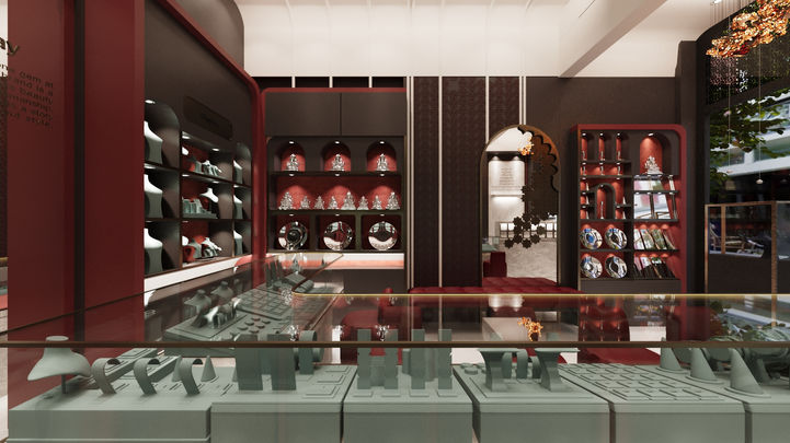 This jewellery store breaks convention by embracing a palette of deep, dark tones — creating an atmosphere of intimacy, mystery, and understated luxury. The design shifts focus from bright opulence to quiet sophistication, transforming the retail experience into a sensorial journey where each piece of jewellery feels like a rare discovery, glowing against the backdrop of shadow.