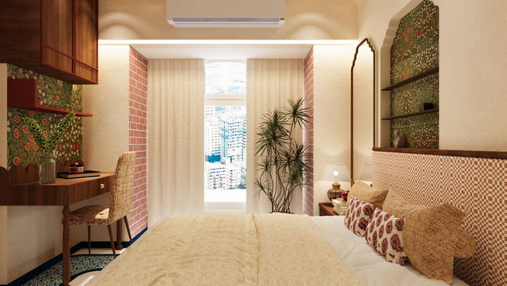 Rooted in vernacular architecture principles, the space features elements like sloped wooden ceilings, open courtyards, and rich textures reminiscent of southern heritage. These are seamlessly layered with modern materials, subtle color palettes, and minimalist furniture to create a home that feels rooted and refreshed.